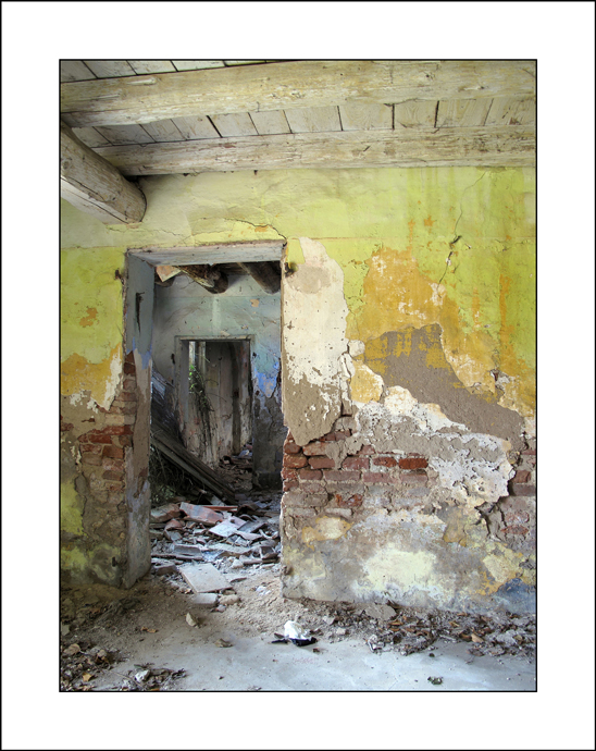 il senso di abbandono è mitigato dalla smagliante nitidezza della foto e dalle bellissime cromie, propirie di questi vecchi intonaci, che non siamo più capaci di riprodurre.