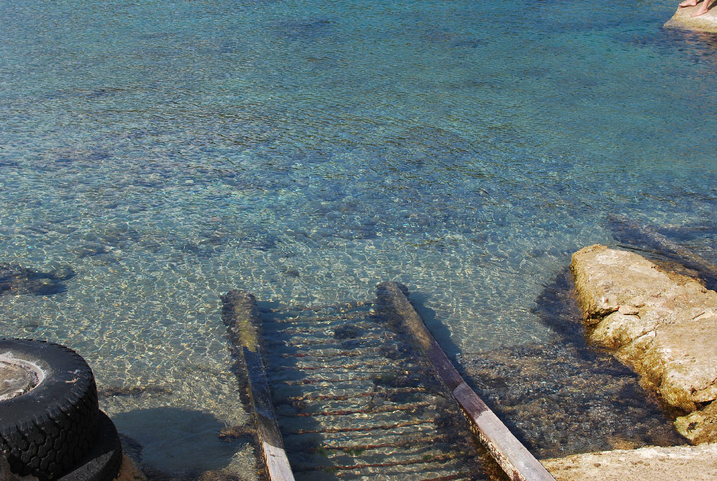 anche grazie al titolo un senso volendo ce lo ha: ad ibiza, posto di vacanza per eccellenza, i mezzi di trasporto, piedi e pneumatici che ti son serviti a raggiungerla vengono poi lasciati a riposare mentre te puoi goderti il sole ed il mare cristallino guidato da una comoda scaletta a centro immagine. magari non è diane arbus ma come foto pubblicitaria per una rivista