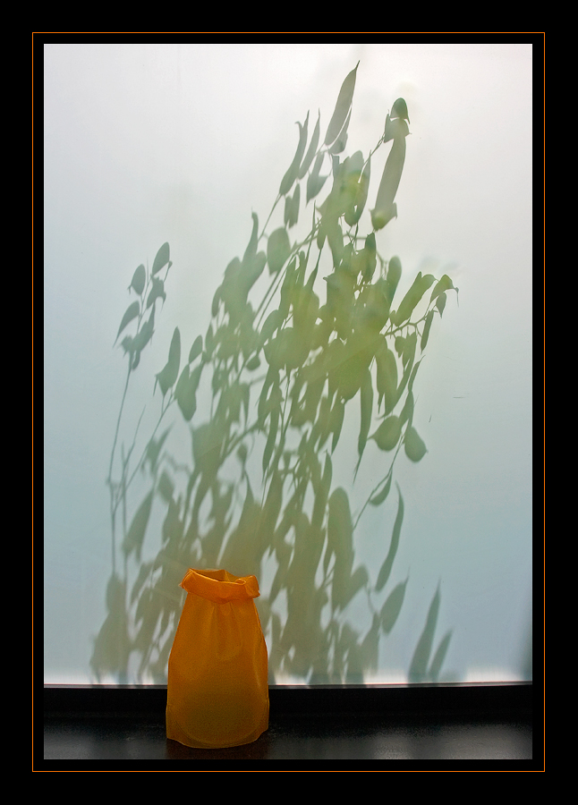 Bella ed elegante, mi piace molto l'associazione tra il dentro colorato e il fuori monocromatico. Le foglie tendono a disegnare una diagonale, un elemento che ricorre spesso nelle tue immagini.