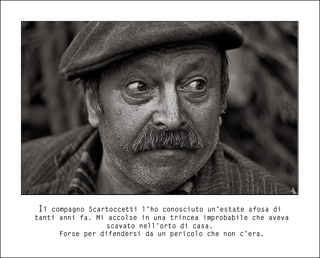 Hai ragione, sembra un ritratto caricaturale ma ti assicuro che non lo è. Scartoccetti era proprio così, un personaggio fuori dagli schemi, passionale fino all'eccesso e con un'idea precisa (e anacronistica) della politica. Un uomo di un altro secolo, uno che aspettava un nemico che non arrivava mai: è anche questo suo ritardo con il tempo che ce lo rende così teneramente simpatico.