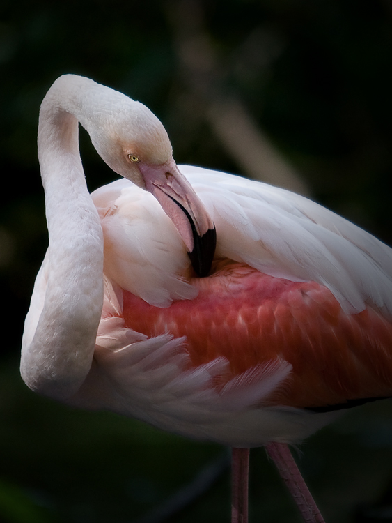 Speciale gestione della luce che carezza il fenicottero. Quella scintilla di luce nell'occhio rende vivo lo scatto.