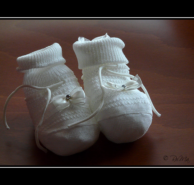 quoto in pieno... ti suggerisco di inserire dell'ovatta all'interno delle scarpine/calzine, e non della carta, quest'ultima potrebbe creare "spigoli" e forme innaturali  |
