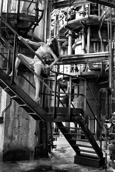 Io avrei fatto arrampicare la modella sulla struttura in fondo,in modo che si mimetizzasse del tutto.E sarebbe una gran bella foto per me