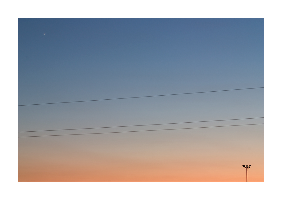 I soggetti diversi contrapposti e ke spkendide sfumature che portano dall'azzuro al rosa attraversate dai fili elettrici come se ne facessero da confine al cambio di gradazione è spettacolare