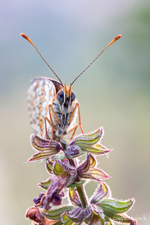 un bel ritratto di melitaea... buona la scelta compositiva, forse avrei lasciato un pelo meno spazio sopra e ruotato un pò la fotocamera per rendere più dinamica la posa! per il resto mi sembra tutto ben gestito, dalla luce alla nitidezza! Ottimo anche lo sfondo!