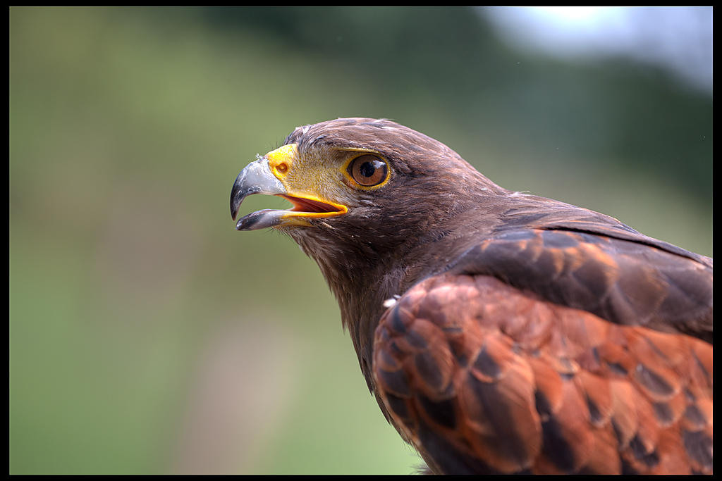 facendo stare l'intero falco nell'inquadratura con tanto di posatoio sarebbe siginificato rinunciare a parte del dettaglio della testa (e dell'occhio) e di tutte le piume che volevo iperdettagliate. Quindi da quel punto di vista l'inquadratura è senz'altro incompleta. Ho solo tentato fare tenere al soggetto un minimo di diagonale.