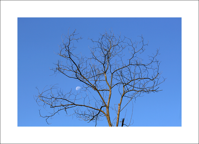 Qui la luce che colpisce il gioco grafico dei rami accende l'intero frame;la luna un cameo che impreziosisce.