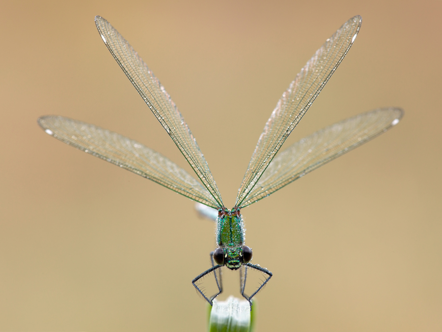 Un'0pera d'Arte (con lettere maiuscole, non è un errore di battitura), questo frontale della Calopteryx è perfetto, soprendente la doppia diagonale che formano le ali e il tutto coronato da uno sfondo perfetto, maf superba, incredibilmente perfetta, i tuoi scatti sono sempre perfetti, ciao Elio