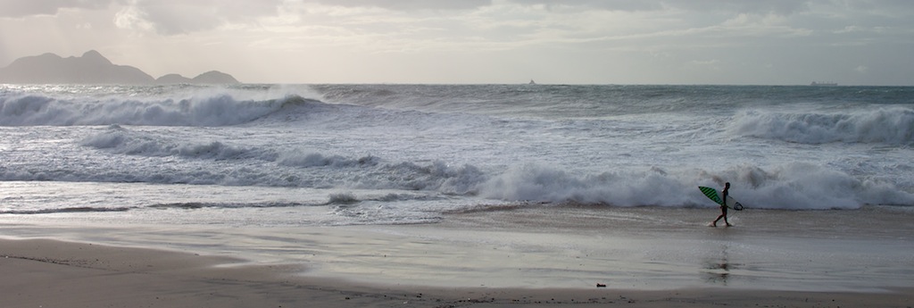 Interessante il punto su dove lasciare lo spazio vuoto; concordo che la regola é lasciare spazio di fronte al soggetto per slanciare il nostro sguardo nella stessa direzione, ma in questo caso non riesco proprio a vedere il surfista (soggetto della foto) sul lato sinistro. Anzi, credo che oltre a dare meglio l'idea del movimento - e del suo lungo viaggio, equilibri i lati (montagne e onde a sx, surfista a dx)