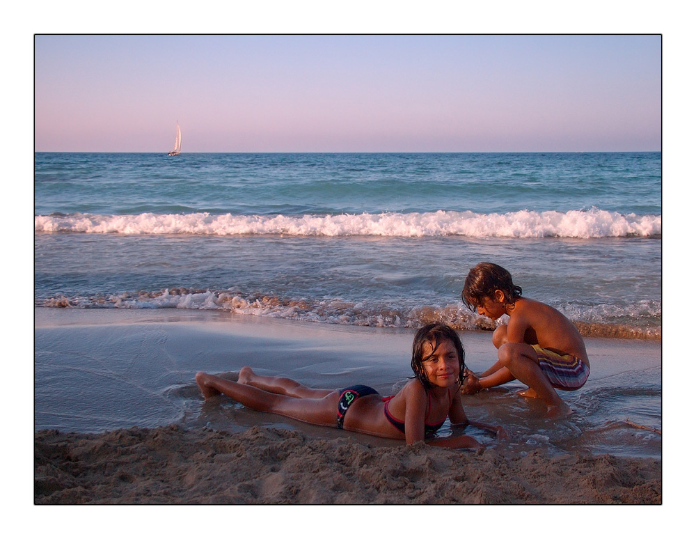 La mia prima impressione è che sia stato usato il gradient di photoshop sull'intera immagine...l'onda mi risulta leggermente rosea in questo senso...ma potrebbe essere l'efeftto dello scatto verso sera? mah!!!