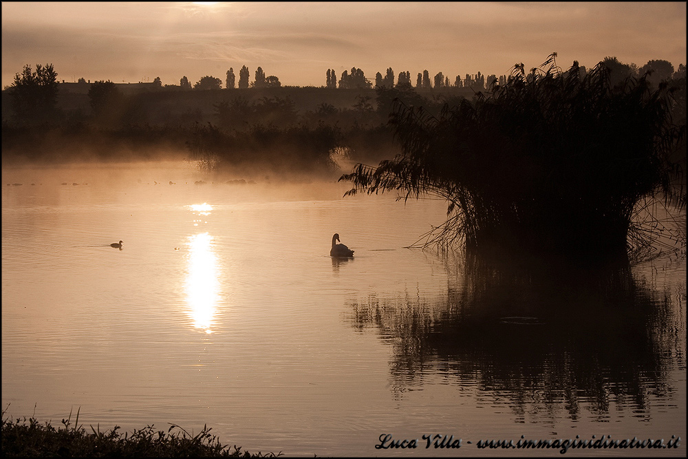Uno scatto molto suggestivo impreziosito dalla "nebbia" sullo specchio d'acqua.