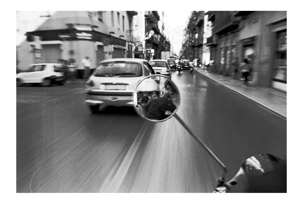 Mi piace la foto e l'ambientazione, particolare il tuo riflesso nello specchietto mentre fotografi
