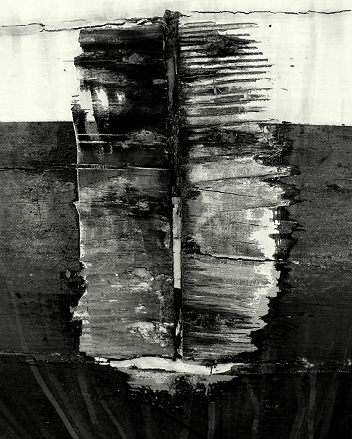 Questo tronco dove la sega è giunta solo a metà dell'opera nella tua trattazione astrale e con questi toni si trasforma in qualcosa di ben diverso e suggerisce sensazioni visive che possono essere diverse per ogni osservatore della tua opera.