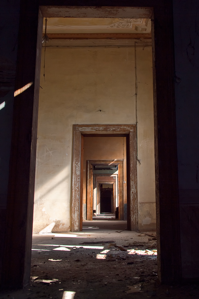 Piace l'idea delle porte a matrioska e del buio a condurle all'infinito in questo abbandono....
