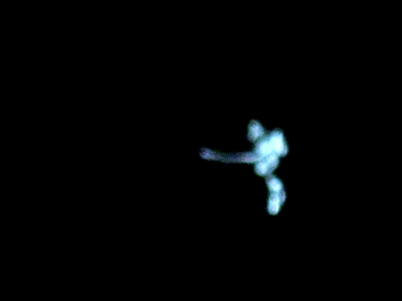 Questa foto è stata scattata con una compattina con zoom digitale e senza cavalletto ad una stella , sicuramente col tremolio della mano è uscito quello che aveste visto oppure in quel momento è passato qualcosa.