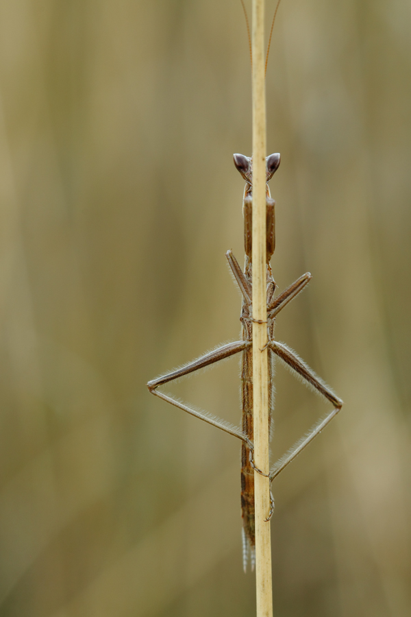 volevo precisare che è stato voluto così lo scatto per dare maggiore importanza agli occhi divisi dallo stelo, cercare un parallelismo con la mantide di profilo già è un'impresa per la particolarità delle forme, cercare una maf frontale su tutto il corpo direi almeno complicatissimo non sarebbe bastato neanche un f20