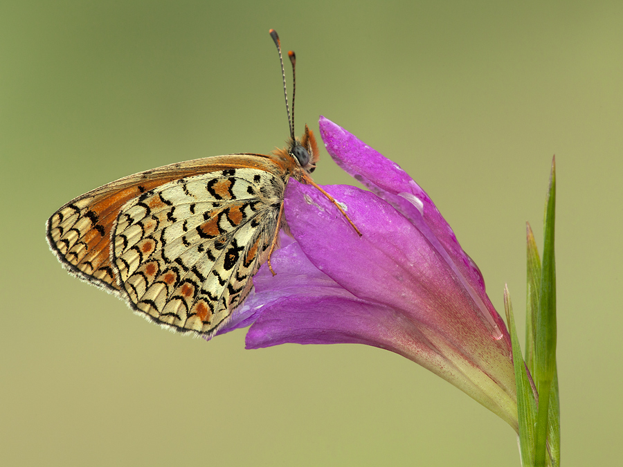 Lo sfondo uniforme a mio avviso valorizza ancora di + i colori della bella Melitaea...