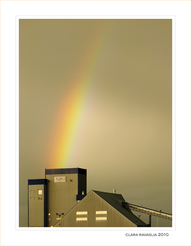 Molto particolare il fatto che l'arcobaleno finisca nella fabbrica... se è vera la leggenda allora la pentola d'oro è prorio lì dentro!! Smile