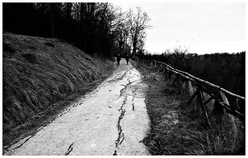 Per quanto tu abbia sfruttato il selciato come linea guida della composizione la completa perdita di dettaglio sulle ombre lungo tutto il fotogramma, a mio personale avviso non aiuta lo spettatore nella lettura della scena.