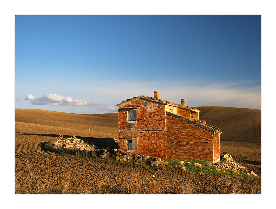 qui, vuoi per la presenza importante del casolare abbandonato o per la composizione che lo pone quasi centralmente, sento come il bisogno di dover respirare più aria...a destra...a sinistra...o in alto...poco conta ma credo che serva più spazio...