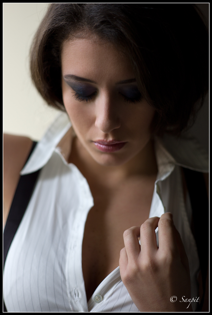 Il seno è indiscutibilmente pronunciato ... al naturale, direi. Sicché non vi sarebbe nulla di che obiettare senonché osservando la foto intera, guardando la modella negli occhi, si ha (io credo) una sensazione di smisurato riguardo questa parte: per il taglio dell' immagine, per la posizone del seno sinistro (per chi guarda) e per il tono chiarissimo della camicia che lo accentua molo, anche in virtù del contrasto con la bassa luminosità della parte restanete del fotogramma. Se lo scopo era porre un accento forte su questa caratteristica direi che l' hai ottenuto; se olte a questo avresti voluto anche una foto esteticamente più equilibrata, per me hai un po' esagerato.