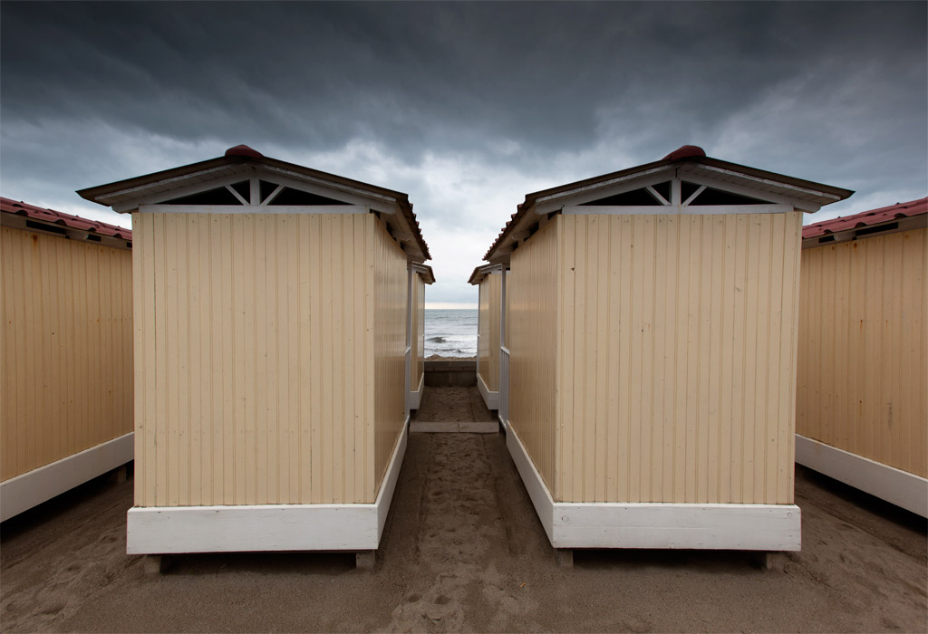 Ho provato ad immaginarla tagliata poco sotto le due tettoie, formando una panoramica, e la preferisco anche perchè le tettoie si inseriscono e integrano col cielo. Ma è una altra foto