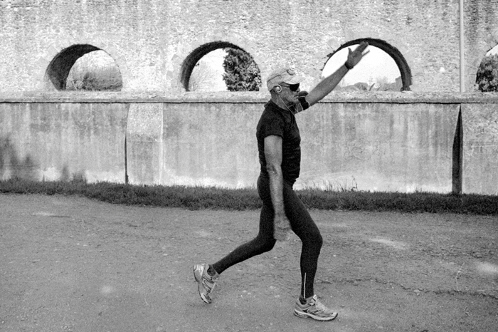 Il nostro Nash è abile ad intuire e a restituire sotto forma di fotogramma significativo un momento insolito nel continuo fluire delle pose. Punta sulla semplicità delle cose: utilizza un tempo veloce su di un'azione piuttosto normale per un corridore sportivo al fine di estrapolare dal continuum percettivo una postura insolita. Non convince invece il punto di vista che crea una prospettiva indecisa; la sovrapposizione di quella mano alla geometria dell'arco che inizia un processo di decodifica e interpretazione futile allontanando dal vero gusto del momento. Il personaggio non più giovane, con tutti i suoi attributi, musica agli orecchi, occhiali scuri e cappello a tesa, è fantastico, ripreso con una buona estensione di passo. La resa della pellicola è molto piacevole.