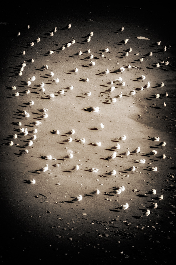 Non male come effetto finale, probabilmente hai voluto evidenziare il momento e la scenografia di posa dell'intero stormo, ma sono mentalmente più legato a cosa mi ha ispirato di primo acchito la thumbnail, avrei adottato un'angolatura diversa, o come suggerisce chi mi precede, avvicinandosi per quanto più possibile ai soggetti, per tirar fuori quel particolare che altrimenti si tinge di luogo comune. |