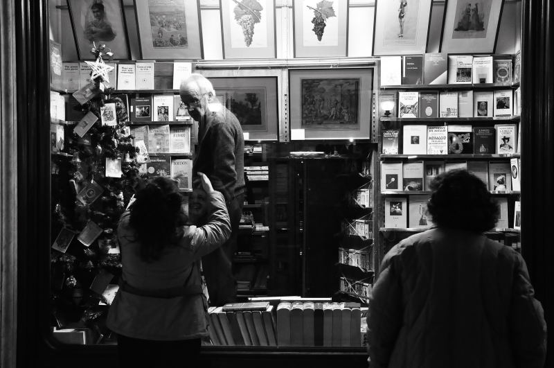 Sorvolando sul titolo che sembra incatenare la fantasia del lettore, la scena presenta del potenziale. L'artificio dell'incorniciamento, la disposizione spaziale degli astanti, le loro posture, i loro gesti, regalano una scena interessante e dinamica. Purtroppo la resa del bianco e nero non è esaltante e i toni chiari, al limite della sovraesposizione tendono a far sfuggire l'osservazione verso l'alto, lontano dalla scena significativa. L'inquadratura pende lievemente a sinistra. L'intuizione è buona.
