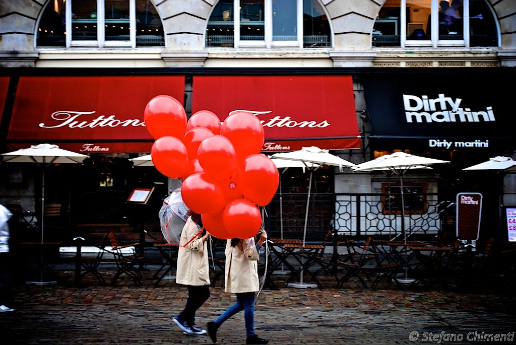 Sul piano compositivo il centro d'interesse delle due comparse è troppo centrale e tenere la donna-pallone con il suo piede proprio sul bordo del fotogramma, non è molto indovinato e anche l'analogia fra il colore dei palloncini e la tenda dietro fa sfocare un po' l'idea iniziale dello scatto, alla sua debolezza contribuisce anche un tempo troppo lungo, creando un fastidioso effetto mosso, a pelle non risulta un'immagine comprensibile al volo, che il più delle volte determina il successo di una foto.