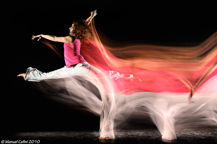 Mi piace, anche se l'avrei preferita con meno "scia". Si vedono due "appoggi" dei piedi della ballerina e fa un po' effetto "millepiedi". Con un solo appoggio (penso bastava 1/2s in meno di esposizione) forse sarebbe più pulita. La resa in ogni caso è davvero interessante: proverei anche con focali e punti di ripresa differenti.  _________________ Gianluca - www.gianlucabocci.it