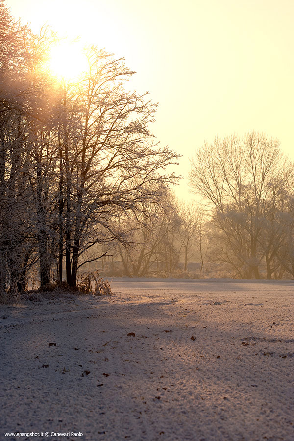Mi piace l'atmosfera che hai saputo creare. Recentemente avevo visto una foto di un bosco innevato, dove il sole faceva capolino tra gli alberi. Il sole è meno alto sull'orizzonte e si trova semi-nascosto tra gli alberi.Ti allego questa foto tratta dal web,prendila come uno spunto, come un modo diverso di visualizzare una rappresentazione fotografica e non come un paragone tra le due foto. Buone foto, saluti Salvatore.