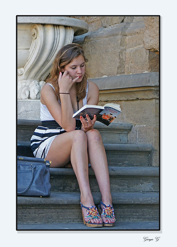 certo che non capisco la gente come faccia a gustarsi un libro seduta sulle scalinate in un luogo pubblico... mah..