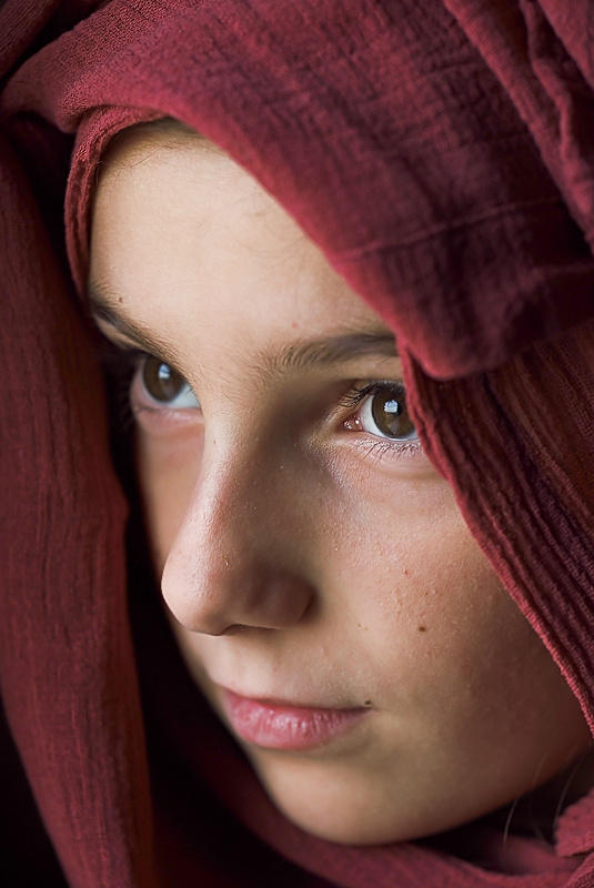 Mi piace. Mi iace per i colori ed i toni, mi piace la luce degli occhi anche se avrei preferito non vedere la finestra riflessa. Sembra un personaggio venuto direttamente da un presepe.