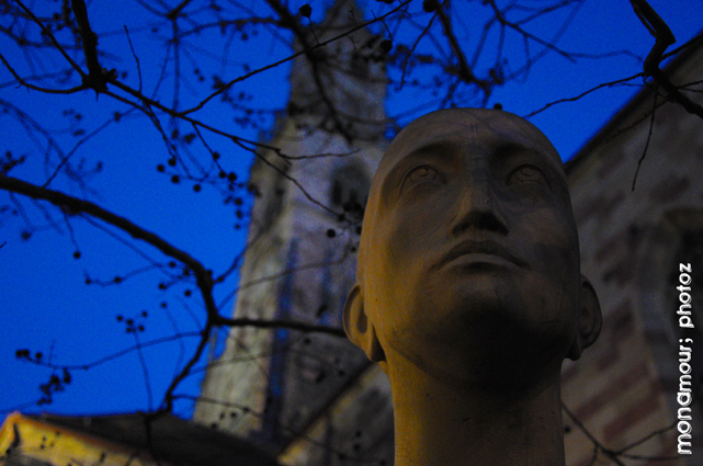 Sono un nuovo utente come te, lo scatto mi piace anche se mi disturba l'algolo in basso a sinistra ..... non riesco a capire cos'e' (un tetto?) ma rovina a mio giudizio lo sfondo. Bello il gioco d'ombra dei rami sul volto della scultura.  |