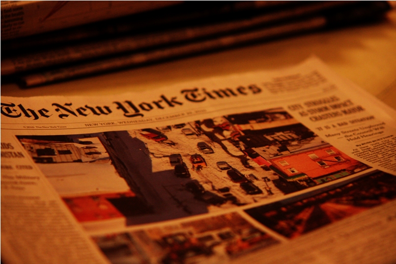 Da un punto di vista tecnico posso dirti che lo sfocato non è male anche se avrei messo a fuoco più sulla notizia della neve che sulla testata... per il resto è un po' sottoesposta e con una forte dominante gialla, credo dovuta all'illuminazione al tungsteno, comunque correggibile con un bilanciamento del bianco appropriato