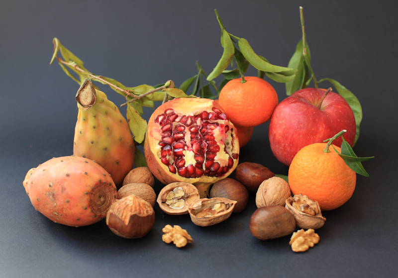 quoto baistro 64 ...poca, molto poca la profondità di campo e in questi genere di fotografia l'aver quasi tutto a fuoco è necessario...in particolare lo sfocato in pp non è consigliabile. La luce è decisamente piatta... non valorizza le rotondità dei frutti proposti. La compo non eccessivamente curata vede il melograno aperto attirare prepotentemente l'attenzione al centro della foto rendendo la composizione decisamente centrale..... ben fatto lo sfondo che non presenta lo stacco tra piano orizzontale e piano verticale, anche se personalmente preferisco il velluto in modo da non avere zone che da nere diventano grigie chiare ( e conseguente proiezione di ombre sullo sfondo).....