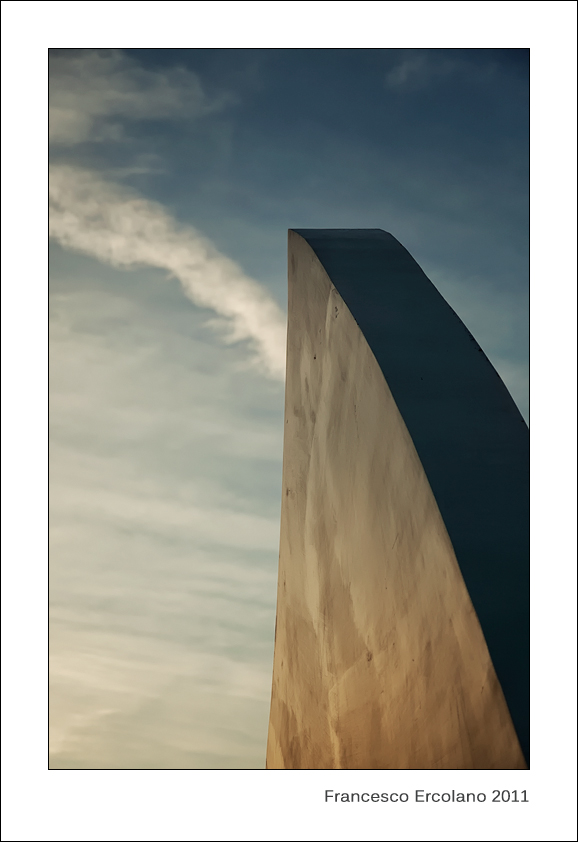 Hai ragione, si tratta di un elemento architettonico assolutamente irregolare...una sorta di vela tra gli abbellimenti del porto del mio paese...mai smettere di guardare tra le nuvole...