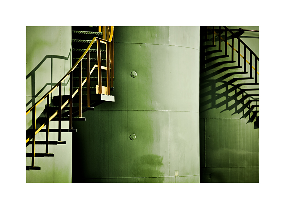 Ciao stew, molto gradito l'apprezzamento,non credo di avere una versione più simmetrica.Ho cercato di bilanciare la porzione di scale,quella a fuoco e quella sullo sfondo,la "sproporzione" è creata dalla forma tondeggiante dei silos.