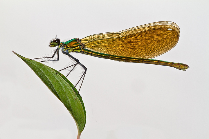 Che spettacolo questa Calopteryx...Davvero come dice Massimo sembra fatta in studio...Lo sfondo anche se non ha sfumature ed il colore è molto leggero devo dire che a me piace molto nell'insieme Ok!