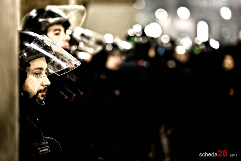 Le luci bianche un po' sparate sono ovviamente lampioni e riflessi sui caschi degli agenti/carabinieri ... li trovi troppo forti anche tu?