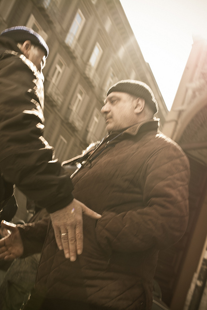 Il punto di ripresa è interessante, da l'idea del mondo dei grandi visti dagli occhi di un bambino...per il resto, troppi errori formali condizionano la scena, il controluce, il mosso, il taglio della mano di uno dei protagonisti si prestano a una critica legata alla composizione, sicuramente dettata dalla velocità in cui hai dovuto agire, ma non giustifica il risultato...sia la preparazione che la realizzazione devono essere migliorati.