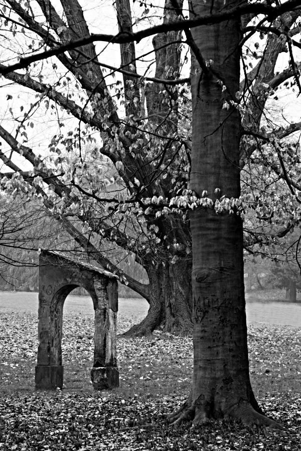 Un buon BN per uno scorcio davvero pittoresco.Mi sarei soltanto spostato leggermente sulla sx per lasciare un po' d'aria tra i due alberi. Comunque complimenti.