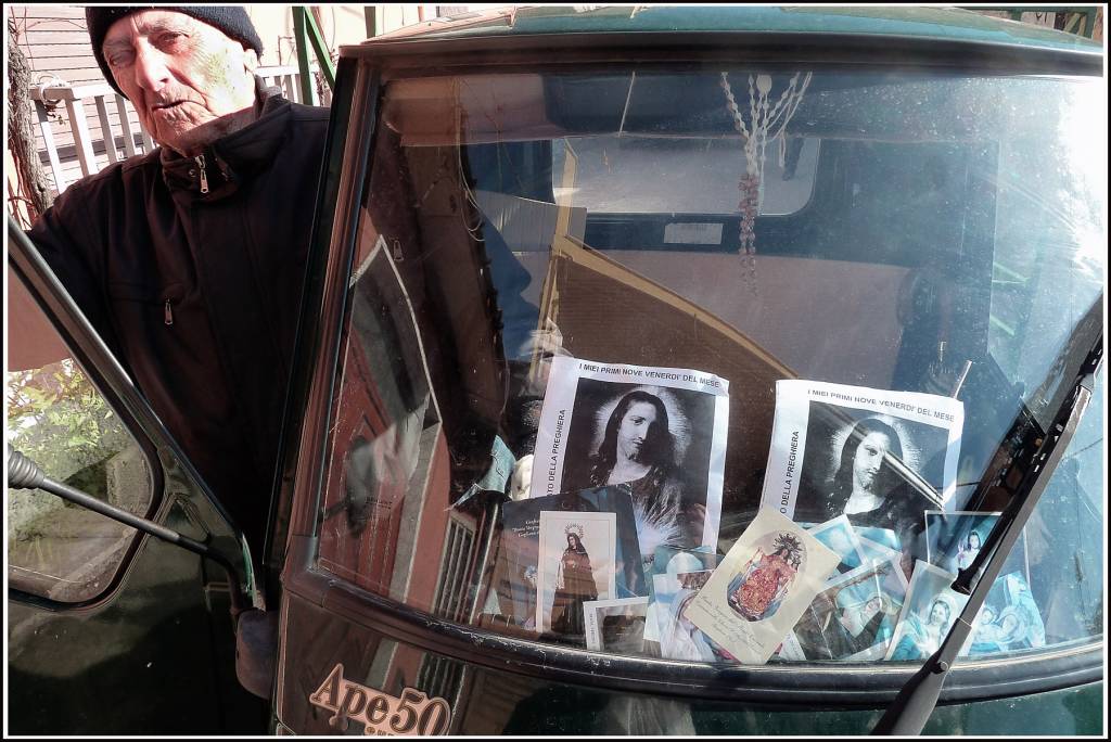 Anche secondo me le due foto non sono rapportabili, nella mia l'interesse che volevo fissare era sull'altarino ambulante del soggetto piuttosto che sul soggetto stesso, sulla situazione insomma piuttosto che sullo status di "motocarrista". Anche le illuminazioni sono diversissime, nella mia molto estrema e proibitiva nell'altra morbida e rivelatrice di ogni singolo dettaglio.