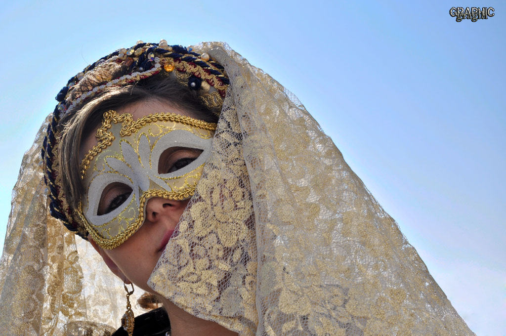 A un primo sguardo mi convinceva poco il velo che attraversa il viso e lambisce la bocca, nel senso che pensavo "no, o tutto o nulla", ma osservando meglio in effetti in qualche modo completa la maschera, proprio per la bocca parzialmente scoperta.... mi incuriosisce molto, quindi per me bravo _________________ Pentax K-r, Tamron 18-200mm F/3,5-6,3,