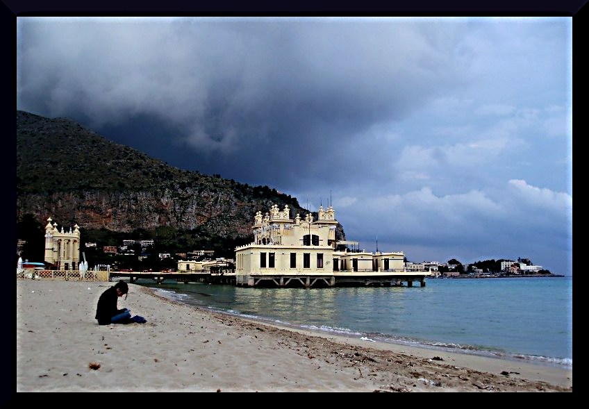 L'unica miglioria poteva essere inquadrare la donna leggermente più dall'alto, in modo che risultasse più sabbia sopra di lei; il risultato globale sarebbe stata una macchia scura in mezzo al bianco delle sabbia e quindi avrebbe spiccato di più; così invece la testa è vicina al pontile e quindi la figura si nota molto di meno.
