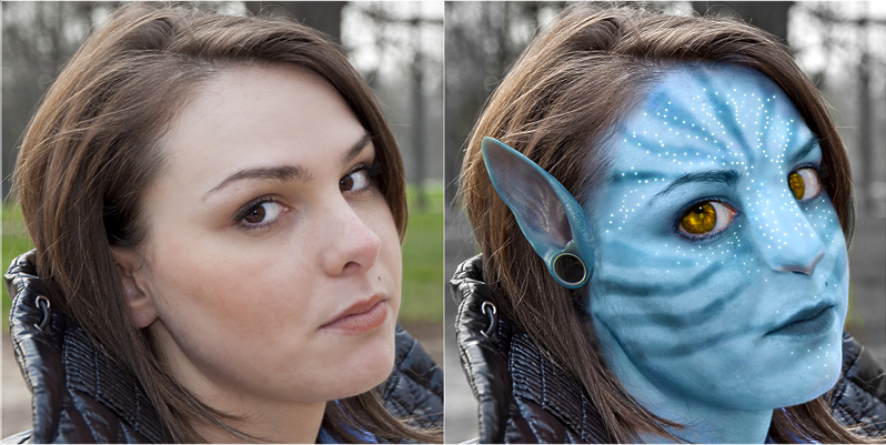 bè, grazie, diciamo che a parte le lucine la pelle colorata con l'effetto brucia delle striatura con photoshop..e gli occhi ingranditi con fluidifica...la difficoltà maggiore l'ho trovata nel rimodellare il naso..farlo come i navy, tosso schiacciato e a punta, sopratutto se lei lo ha alla francesina, non è semplice, il resto è abbastanza semplice.