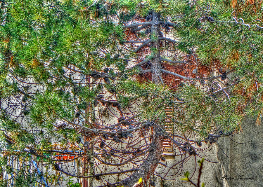 | Il posto ha un bell'effetto sugli aghi di pino, è la foto originale che non va, per via dello sfondo e del taglio. |