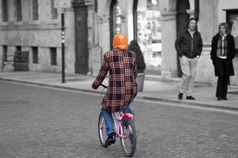 Come momento "life" non mi pare coinvolgente: una persona di schiena in bicicletta, senza relazione con le altre figure nell'immagine.