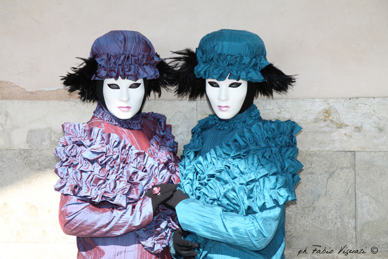 una gestione della luce particolare, forse difficile da "accettare" ma che, a mio avviso, con le mani giunte delle due maschere che si incontrano proprio nella luce.. non è male. I riflessi cangianti del vestito bordeaux, con la luce cosi forte, acquisiscono una iridescenza un po' insolita.. MI lascia perplesso la scelta di decentrare i soggetti. Peccato anche per la luce forte sul muro a sinistra.